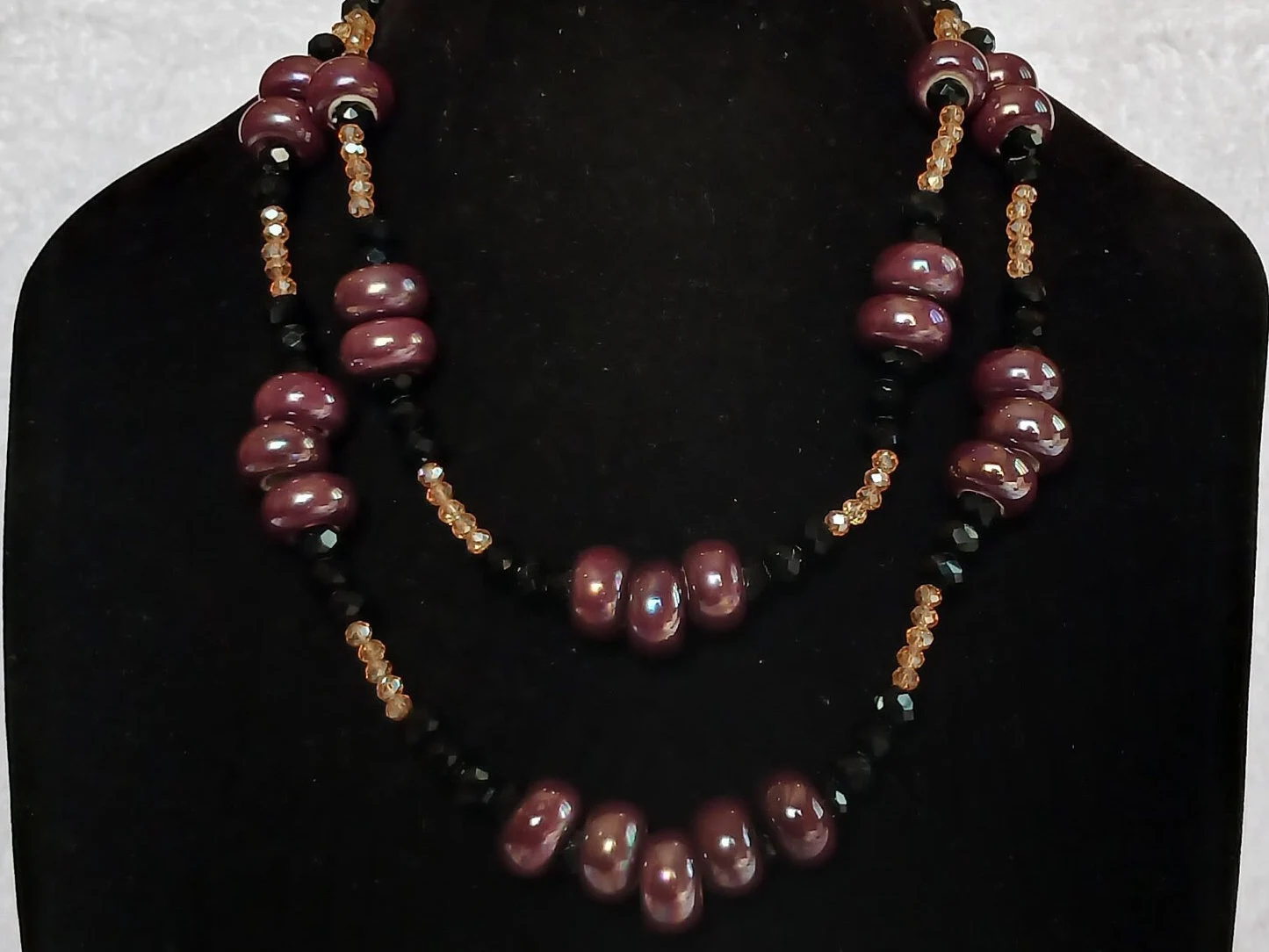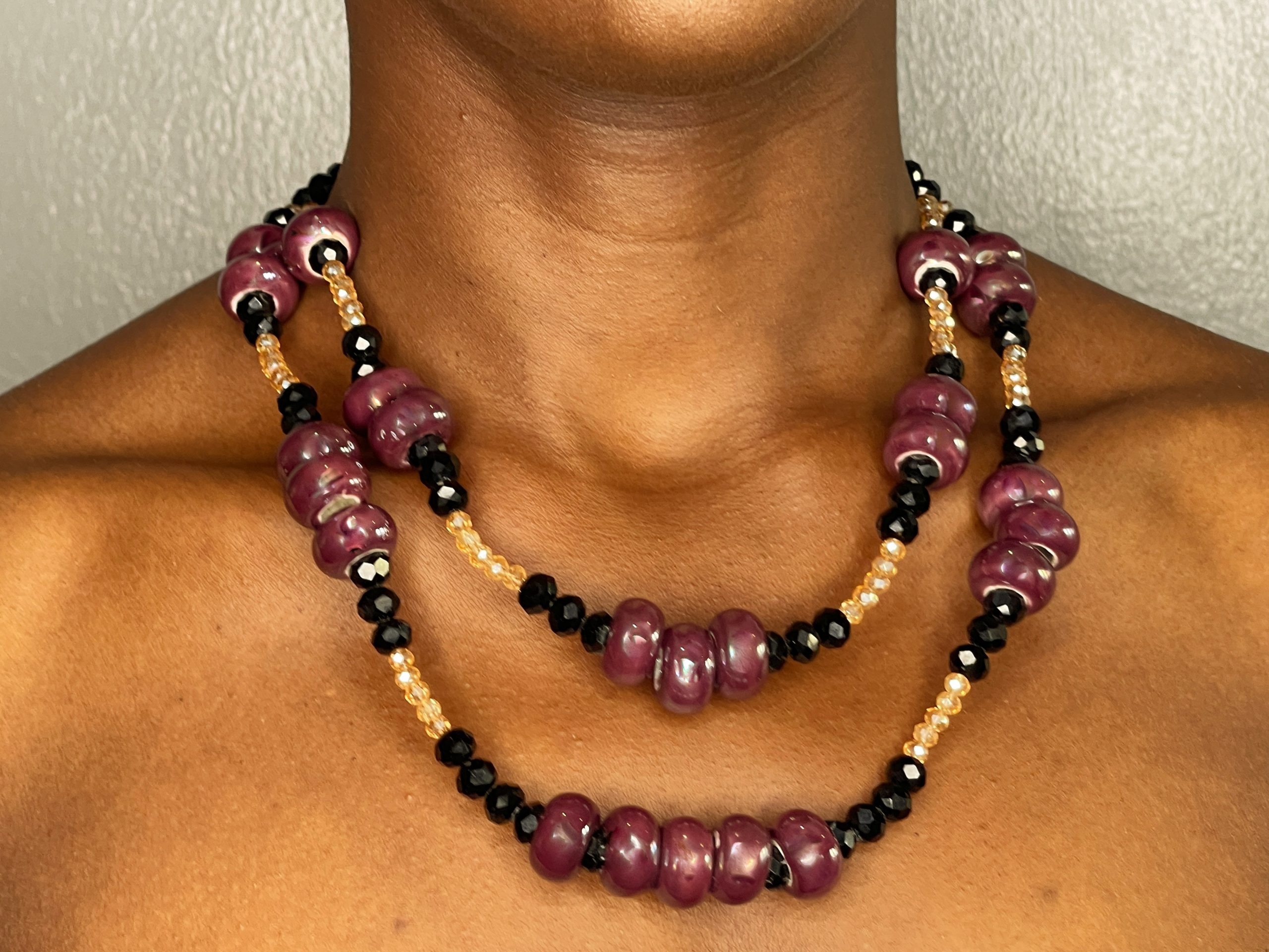 Deluxe African Hopadel Beaded Jewelry Set – Handmade Necklace Bracelet Earrings – PURPLEHIBISCUSLOLA